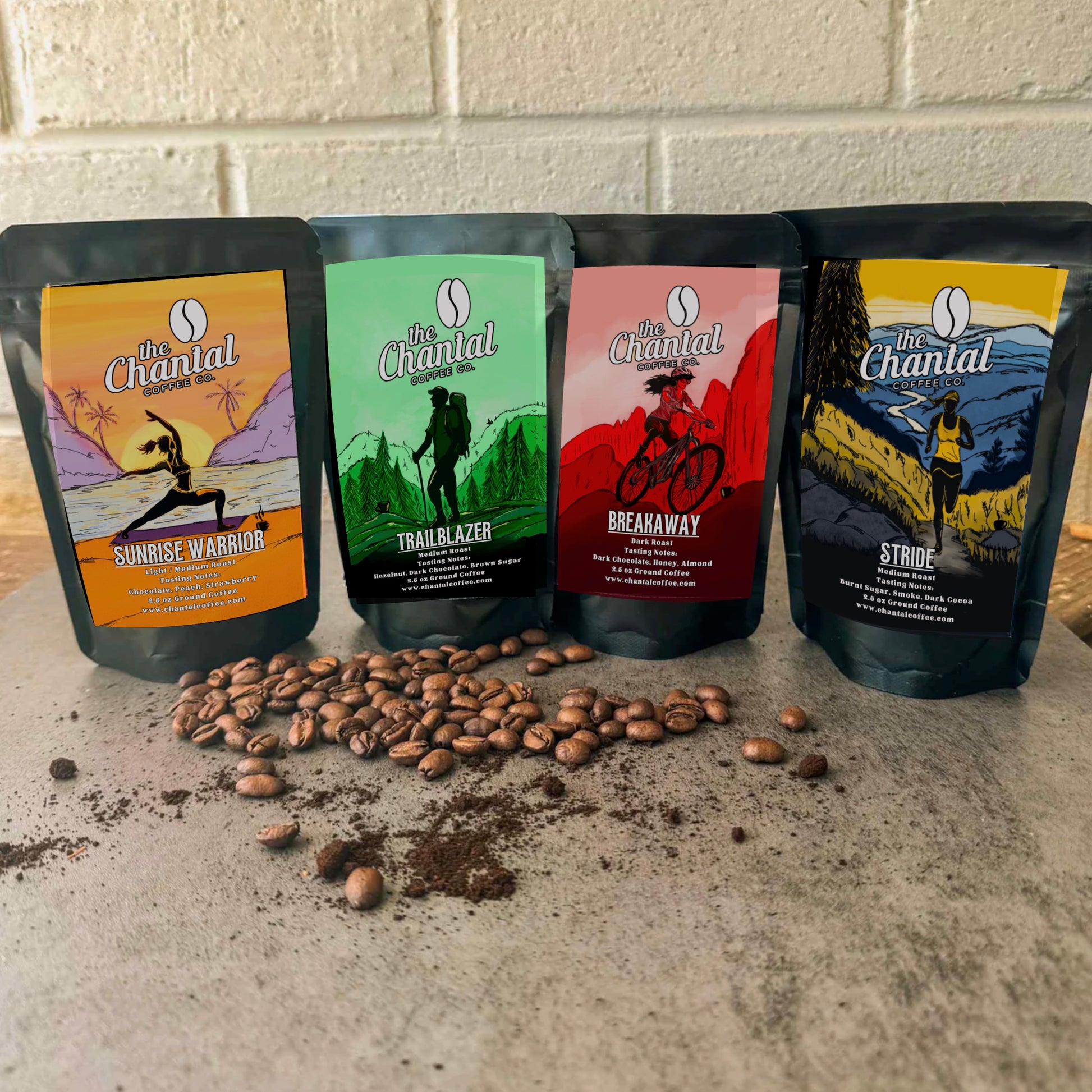 Meet your new favorite way to share great coffee. Our 2.5oz Frac PACs are perfectly portioned for a fresh, flavorful pot, no measuring, no mess, just pure coffee bliss. Each pack is filled with our signature small-batch roasted blends, from the bright and fruity Sunrise Warrior (light/medium) to the smooth and chocolatey Trailblazer (medium), the bold and rich Breakaway (dark), and the deep, smoky Stride (extra dark French roast).